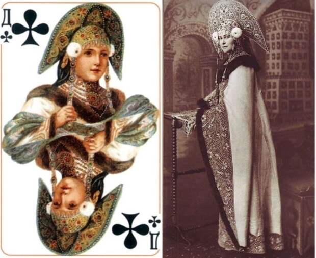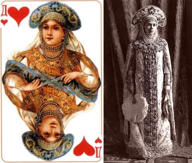 Ничего необычного на первый взгляд в них нет – мы настолько привыкли к этим рисункам, что наверняка даже не обращали внимания на одежду карточных героев. Вот в этом-то и странность: прототипами для королей и дам в этой колоде стали не пролетарии и колхозницы, а участники последнего костюмированного бала при императорском дворе Романовых в 1903 г.